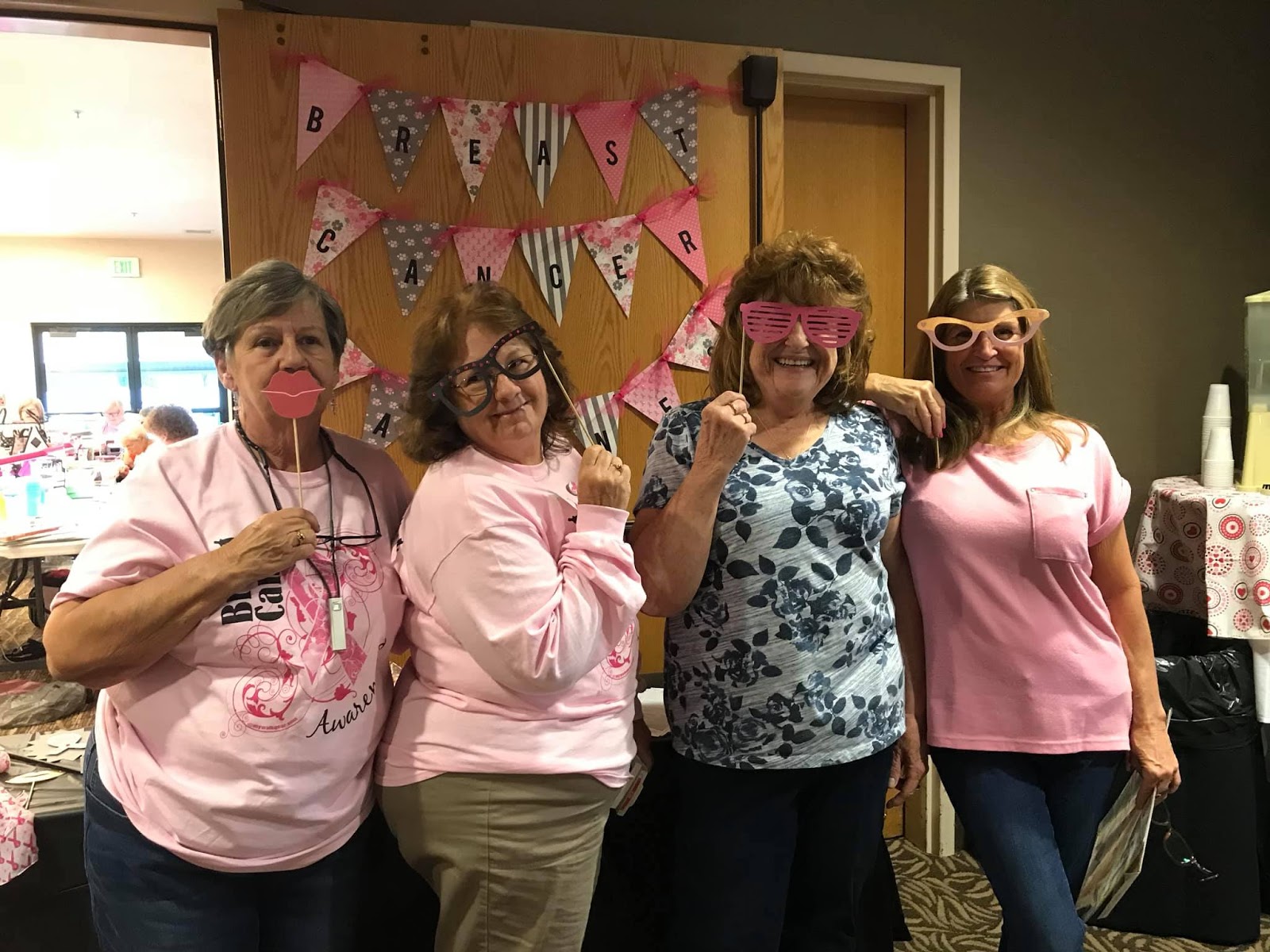 Red Rooster Scrapbook Barn had a very successful breast cancer scrapbook retreat fundraiser!! We raised $3,575.50!! I am so very thankful for all the ladies and the “Tough Enough to Wear Pink” men who participated in this great event!. We had so much fun! We had 18 raffle items, 8 silent auctions items and one live auction item. I gave away 3 overnight scrapbook retreats. We played Bra Pong and spun the Spin-n-Win wheel for prizes and we had “mammogram” cookies!! Everyone was a winner with a prize no matter how they participated. It was an honor to have the ladies from the Box Elder County Women’s Health Coalition attend our retreat! They too gave away prizes and talked to us about breast cancer awareness. It was our pleasure to give them all the money we had raised up to that point and give them 35 breast cancer cards all the ladies made at the retreat. Special thanks go to so many people and businesses who provided items for our raffle and auctions. My heart is very full 💕